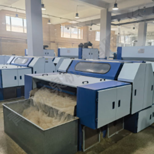 本機(jī)開(kāi)松由雙錫林排列,一輥筒軟開(kāi),二輥筒精開(kāi)。工作輥與撥毛輥結(jié) 合錫林滾筒可達(dá)到開(kāi)松梳理出單纖維且蓬松狀態(tài)的動(dòng)物纖維。后輥筒部 分有去粗、去雜效果;分梳行業(yè)為最前道工序,效果突出,是聯(lián)合梳理 機(jī)必備產(chǎn)品之一。